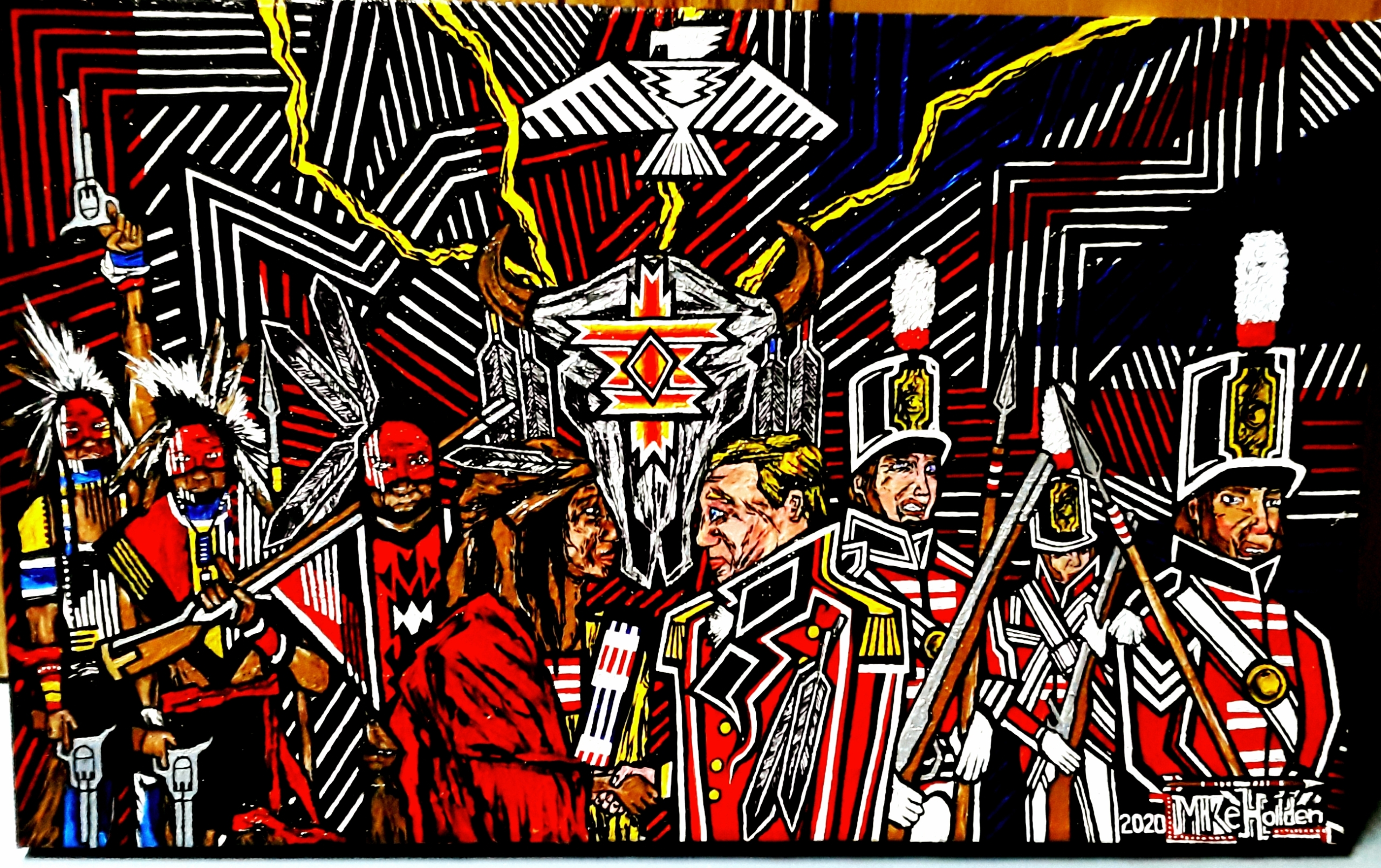 Mike Holden’s Original Acrylic on Canvas Paintings, Fine-Day Part III, Every Child Matters, They Tried to Bury Us (They Didn’t Know We Were Seeds), and The War of 1812 were acquired by The Canadian Museum of History in Gatineau, Quebec.