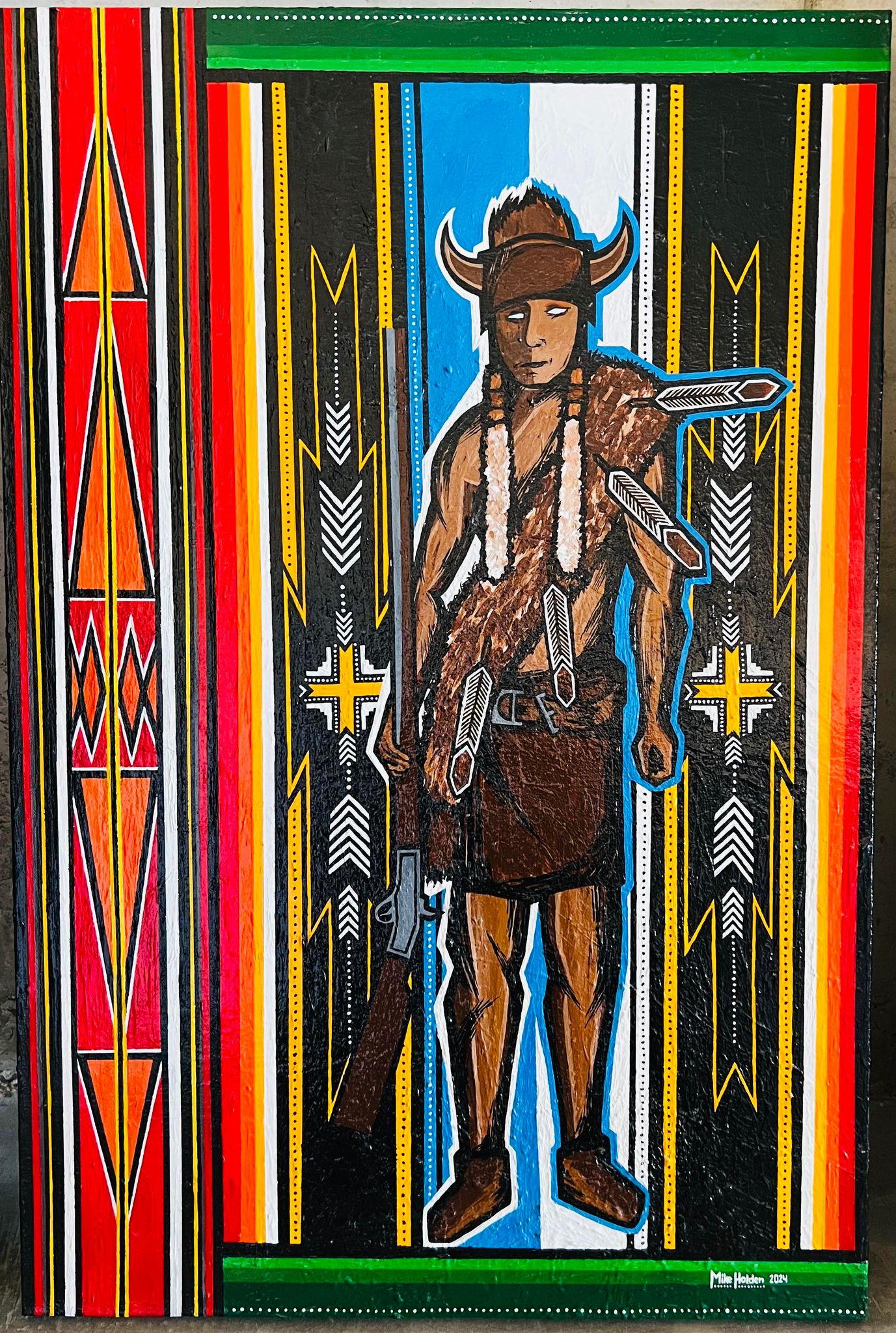 Holden’s acrylic paintings Fine-Day, Wandering Spirit, and Thunderbird Warrior are part of the Royal Alberta Museum’s permanent collection in Edmonton, Alberta, while his painting Dreaver is held in the permanent collection of the Canadian War Museum in Ottawa, Ontario. Most recently, Holden’s works Fine-Day Part III, Every Child Matters, They Tried to Bury Us (They Didn’t Know We Were Seeds), and The War of 1812 were acquired by The Canadian Museum of History in Gatineau, Quebec.